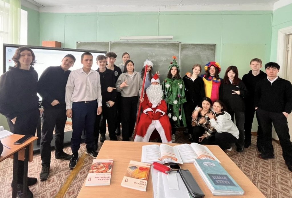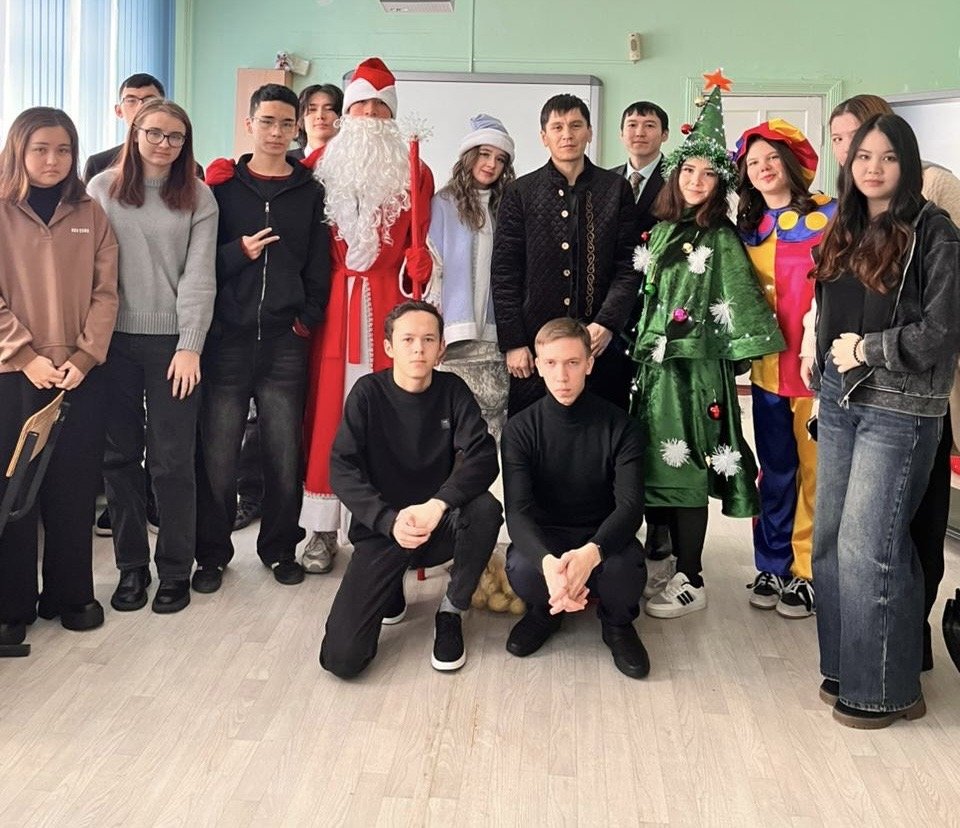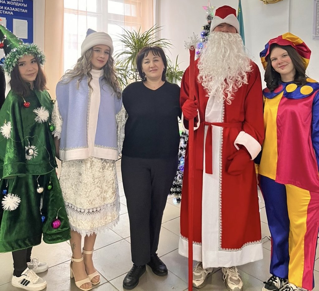 Колледждің дәліздерінде күлкі, музыка мен мерекелік әндер естіліп тұрды, өйткені студенттерді Аяз Ата – Дружин Тимофей (Т-6), Қарша Қыз – Старушенкова Злата (П-24), Шырша – Плетнёва Камила (У-23), көңілді Клоун – Мальцева Валентина (М-5), музыкалық сүйемелдеу – Амангельдинров Темерлан (Т-36) және мобилограф – Массон Софья (П-4) қарсы алды.