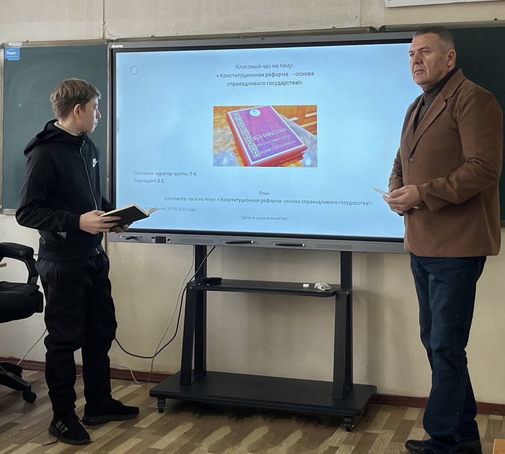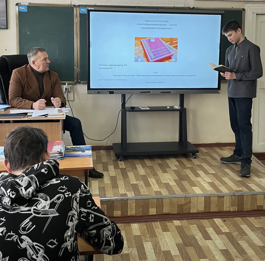 2 ақпанда Т-6 тобында «Конституциялық реформа - әділ мемлекеттің негізі!» тақырыбында сынып сағаты өткізілді.