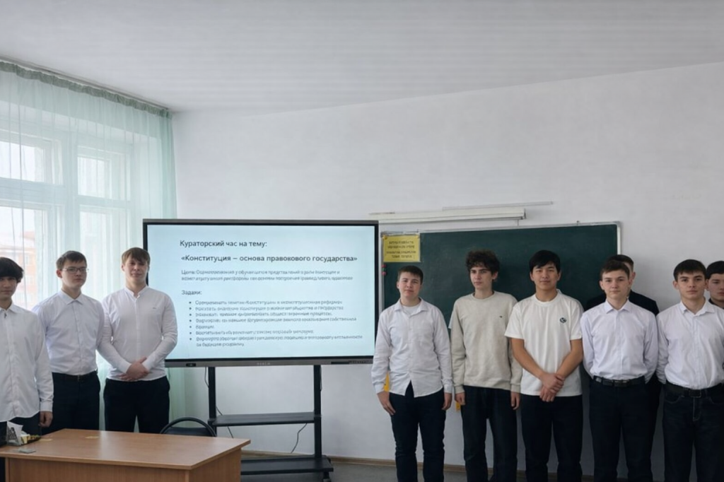 2 ақпанда Э- 22 тобында «Конституциялық реформа - әділ мемлекеттің негізі» тақырыбында сынып сағаты өткізілді. Мақсаты оқушылардың бойында әділ, құқықтық мемлекет құрудың негізі ретінде Конституцияның рөлі және конституциялық реформа туралы түсініктер қалыптастыру. Сынып сағаты барысында мынадай негізгі ұғымдар қарастырылды: Қазақстан Республикасының конституциясы, адам, оның өмірі, құқықтары мен қадір-қасиеті басты құндылық болып табылатын Әділ Қазақстанды құруға бағытталған Қазақстанның конституциялық реформасы. Сынып сағаты әңгімелесу түрінде өткізілді. Қорытындысында: билік те, азаматтар да Конституцияны сақтаған кезде ғана әділ мемлекет болуы мүмкін деген қорытынды жасалды.