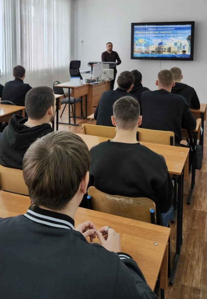Өндірістік оқыту шебері Бралин Тимур Айтбайұлы студенттерге неге құқық үстемдігі қағидаты кез келген заманауи мемлекеттің, соның ішінде еліміздің дамуының іргетасы болып табылатынын түсіндіріп берді.