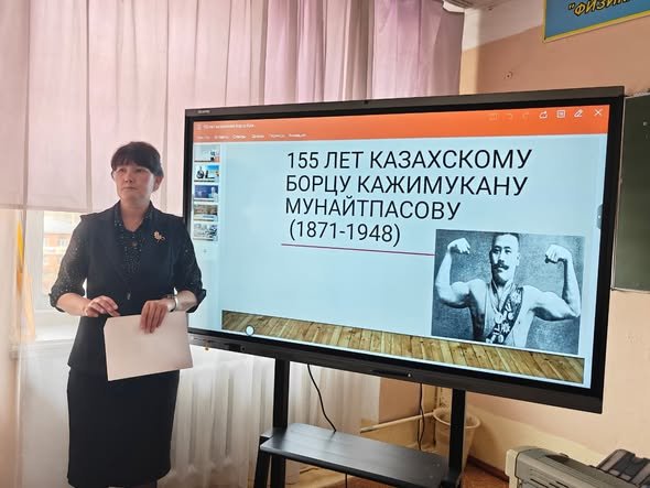 Сынып сағаты барысында оқушылар Қажымұқанның өмірбаянымен, оның өмірлік жолы мен спорттық жетістіктерімен танысты. Оның халықаралық ареналарда өнер көрсетіп, әлемнің көптеген елдерінде танымалдылыққа ие бола отырып, қазақ халқын Отанынан тысқары жерлерге танымал етуіне ерекше назар аударылды.