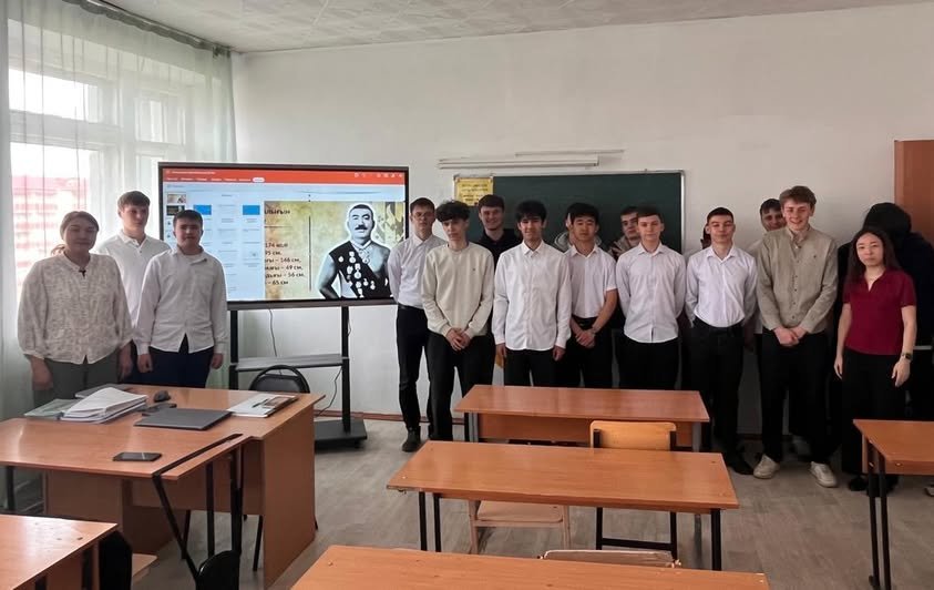 Сынып сағаты барысында студенттер француз күресінен әлем чемпионы болған алғашқы қазақ Қажымұқан Мұңайтпасовтың өмірбаянымен танысты. Оның рухына, еңбексүйгіштігіне және жеңіске деген ұмтылысына ерекше назар аударылды. Білім алушылар оның Қазақстанды халықаралық аренада қалай танымал етіп, ұлттық мақтаныштың нышанына айналғанын білді.